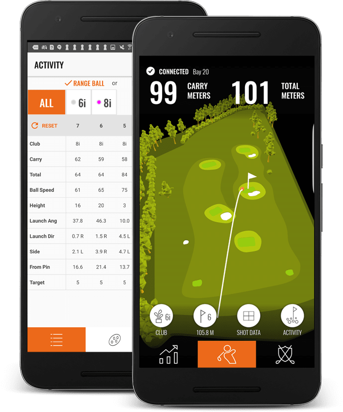 Live shot data for golfers at driving ranges equipped with TrackMan's radar system. Android development. Android Phone
